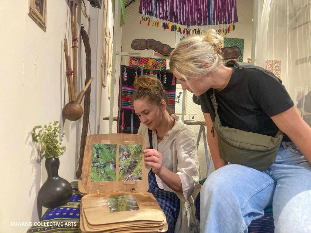 Ruwang Collective Arts showcased the “Mangpli” initiative in the second edition of the Dhaka Makers exhibition alongside numerous artists. This initiative, based in the Chittagong Hill Tracts, focuses primarily on promoting Indigenous artists, art, and culture. During the exhibition, Ruwang Collective Arts showcased the “Journey of Light,” a photo project under the Mangpali initiative. This collective photo story, captured by students from Kinitheu School in the Chittagong Hill Tracts, documents their daily lives using five old digital compact cameras. The photographs beautifully depict scenes of their surroundings, lifestyle, school experiences, and activities such as walking through waterfalls, exploring mango orchards, participating in hostel kitchen duties, and fetching water from streams. The Mangpli project specifically aims to empower Indigenous children by introducing them to photography as a means of sharing their untold stories. This exhibited indigenous traditional materials and objects such as Plung , ornaments and attires, were a collaborative effort involving Ruwang Collective Arts, Hill Resource Center, and Kinitheu/ChotoBela, featuring the creative contributions of students like Rengchgang Mro, Prengi Mro, Thangpre Mro, Menya Mro, Nguiing Mro, Fraylingeng Khumi, Khingrung Mro, and Paiyen Mro.