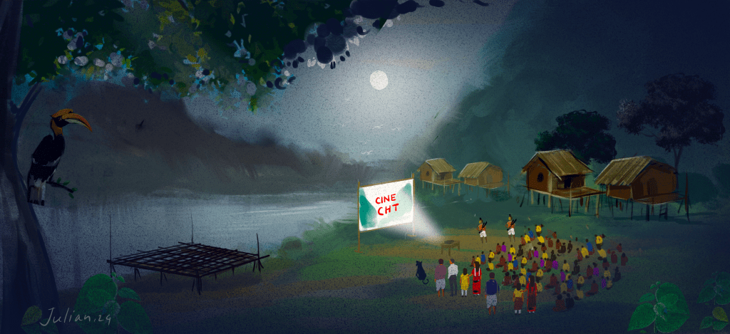 Cine CHT (Chittagong Hill Tracts) is one of our projects that we focus to bring cinemas to the remote Indigenous Peoples territories through screening Indigenous languages films, as well as world popular cinema . Furthermore, we encourage Indigenous filmmakers through delivering their films to Indigenous population, whether they live in remote areas or cities.